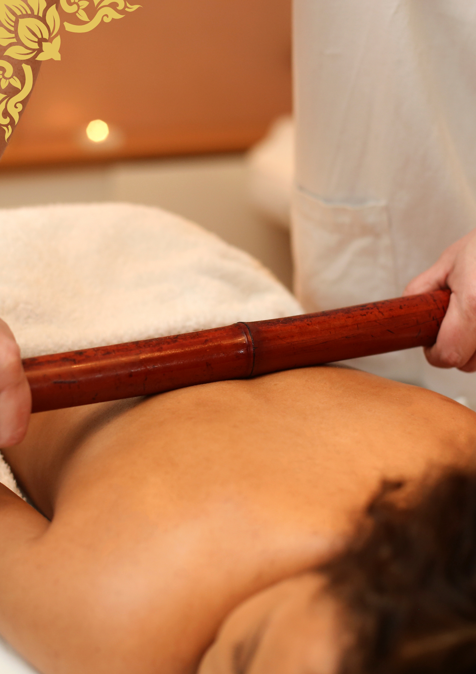 Bamboo massage uses warm bamboo rods to knead and stretch muscles, providing deep relaxation and relieving tension.
